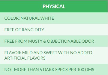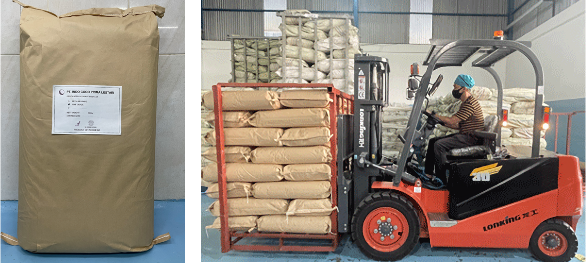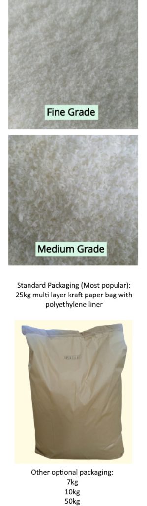 Desiccated coconut is made from the flesh of mature, fresh coconuts. It is consumed globally in the preparation of bakery, confectionery and other food products. Our desiccated coconut is made from carefully selected coconuts of the finest quality from Southeast Sulawesi. Our product has a clean white color free from impurities and has a naturally pleasant coconut taste and aroma. Detailed specifications of our high fat desiccated coconut, in fine and medium grades, can be found below. For other information please visit our FAQ page or send us an email. We will be happy to answer any of your questions.